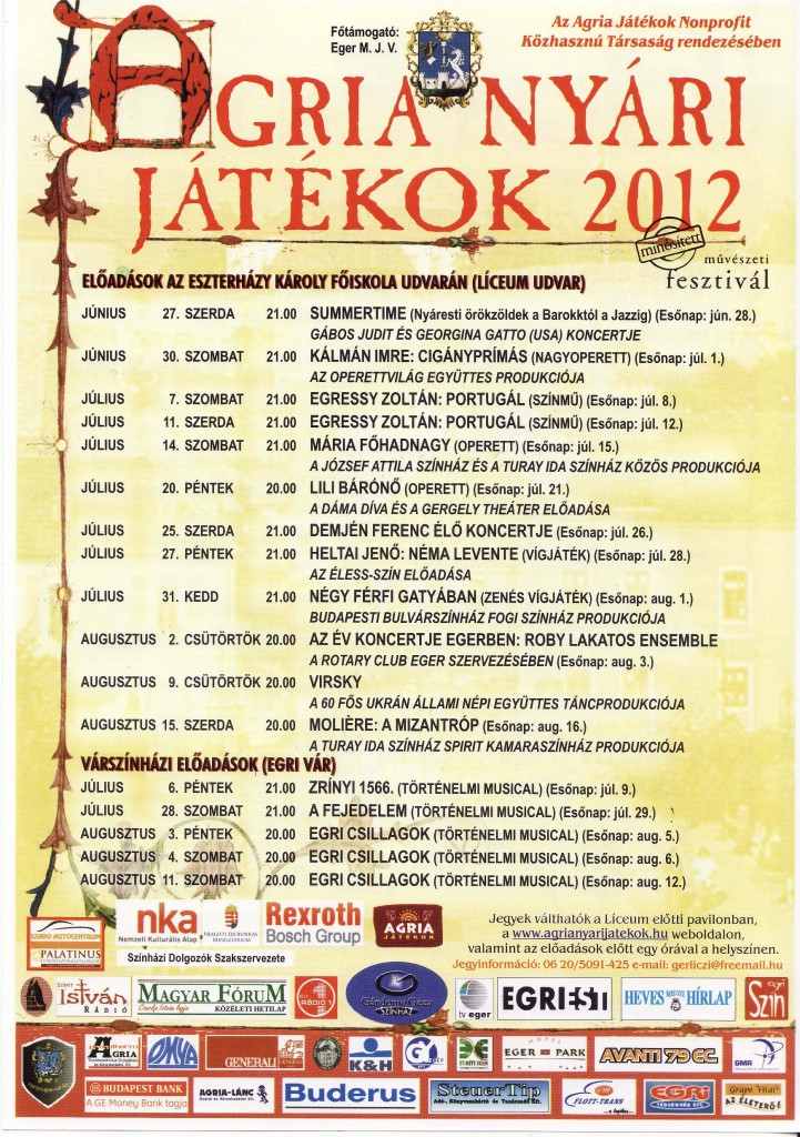 Noha magától értetődő eseményként kezeljük, az Agria Nyári Játékok valójában az országban egyedülálló méretű és felhozatalú vidéki kulturális program, mindenek előtt ezzel kéne tisztában lennünk. Természetesnek vesszük, hogy csak a líceumi helyszínen 12 féle előadást láthatunk, gyakorlatilag két hónapba sűrítve. Viszonyításképp, függetlenül attól, hogy mind a szervezés, mind a műsorok színvonala garantáltan a legmagasabb szintű, a Szegedi Szabadtéri Játékokon ez a felhozatal 8 darab előadást jelent. Színművek, operettek, vígjátékok és koncertek váltják egymást napról-napra egy 55 000 lakosú kisvárosban, ahol páran értetlenül állnak, hogy miként maradhatott el ezen előadások közül három darab. Aránytalanul nagy a kínálat, már csak a Líceumban is, a másik három színpadot nem említve.