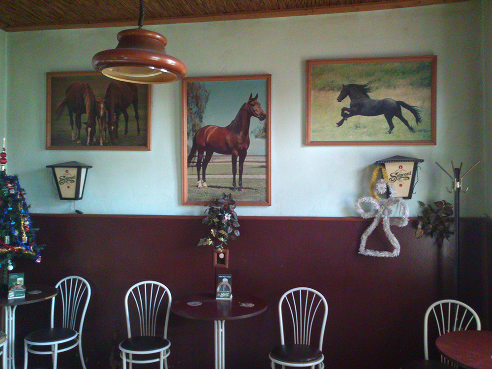 Még át sem léptük a küszöböt, már töményen átjárt minket a múlt, gyakorlatilag éreztük, ahogy felszívódik a telefon a zsebünkből és úgy általában eltűnik rólunk minden, ami a mai korhoz köthető. A Póniban mindenhol voltunk, csak nem Egerben és pláne nem 2013-ban. Ez a múltbéli időutazás a kiszolgáláskor lett teljes, amikor az először vendégnek nézett néni átsántikált a meleget adó, fatüzeléses kályhától a pult másik oldalára és mosolyogva kérdezte tőlünk, hogy mit iszunk. Valószínűleg a tulajdonos felesége lehetett, de szemmel láthatóan csak a kiszolgálás terén vesz részt a Póni életében, amikor fényképre kértünk engedélyt is bátortalanul mondott igent, hozzátéve, hogy azért kérdezzük meg a szintén a pult túloldalán ülő férfit is. Félbehagyva a ki-kicsoda kérdéskör további faggatását, inkább bevackoltuk magunkat a szoba végébe és élveztük a hangulatot. Kár, hogy voltak ablakok a helyiségen, a forgalmas Sas utca helyett inkább szántóföldeket képzeltünk odakintre lelki szemeinkkel, soha nem gondoltuk, hogy Egerben is találunk egyszer egy ennyire mezővárosokra jellemző csupa nagybetűs kocsmát. A berendezésből a székek és az asztalok lógtak ki mindösszesen „modernségükkel”, minden másból sütött a múlt. A Póni névre odabent pár lovas fotó utalt, bár ez fájó pont volt, hogy azok valóban lovak voltak, nem pedig pónik :( A kiszolgálás kétségtelenül kedves volt, üveges Borsodinkhoz 260 forintért jutottunk hozzá a pár lehetőségből álló italválasztékból. A mosdó olyan volt, amilyen – ehhez persze hozzátartozik, hogy a célnak és a kocsma hangulatának tökéletesen megfelelt ez a rész is. Érdekes volt és pozitívan lepődtünk meg rajta, hogy a vendégek gyakorlatilag észre sem vettek minket, gyakorlatilag mintha hétköznapi jelenségek lettünk volna odabent. Mi nagyon szerettük a Pónit, karakterességével csak jót tesz az egri kocsmafelhozatalnak, persze helynén kell kezelni és csak azt szabad elvárni tőle, amit már kívülről megítélve is adni tudhat.