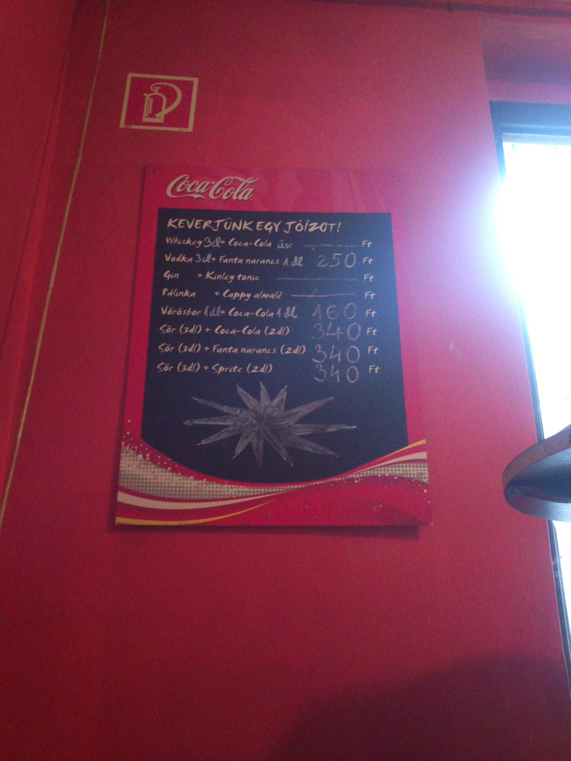 | Beltér | Vendégek | Kiszolgálás | Mosdó | Ár |