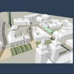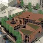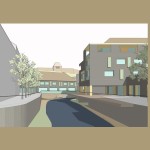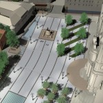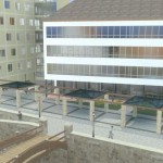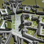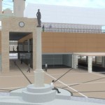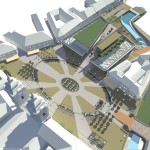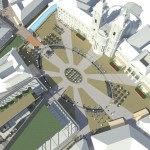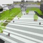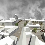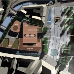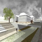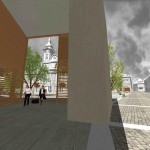Ez a kedvenc pályázatunk, a sors keze, hogy nyilván ebből kell nagyítóval keresni a megvalósult elemeket. A miskolci csapat egy igazi modern-nagyvárosi fejlesztést képzelt el Eger belvárosába, jobbnál-jobb ötletekkel. Egy történelmi város jövőjéről alapvetően kétféleképp lehet gondolkozni, egyik, hogy megállunk a fejlődésben és élünk a múltnak (a sikeres megoldásokat ebből hívják skanzennek), illetve, hogy összemossuk a modern világot a régi értékekkel (a sikeres megoldásokat ebből hívjuk egészséges és gyönyörű, Nyugat-európai városoknak). Ahogy a miskolci csapat, úgy mi is a második megoldást szeretnénk Eger jövőjének, így érthető a szimpátiánk. Visszatérve a tervükre, a leginkább tetsző ötleteik közül az első egy új irodaház volt a Centrum mellé. Eleve, ők megnagyobbították volna az áruház területét, gyakorlatilag az egész szomszédos parkoló beépült volna – többek közt az irodaházzal is, ami a Zalár utcán kapott volna helyet. A Gárdonyi térre is tettek volna egy galériát, ezen épület-, illetve az irodaház közé pedig egy apró teret, ivókúttal a közepén. Legjobb. Elképzelés. Ever. A vizet ők a Dobó tér egész áruház felőli oldalára tervezték, csobogókkal,víztükörrel. A jelenlegi szökőkút helyén egy földbe süllyesztett középkori városmakett lett volna látható. Ami nem tetszett, hogy ők összenyomták a Dobó teret, a templom oldalára is több fát raktak, ezzel gyakorlatilag utcára szűkítették a rendezvényteret. Valószínűleg ez is volt az egyik probléma a tervvel, hogy bár iszonyatosan jó elképzelések vannak benne, a fő probléma – hogy a belváros alkalmas legyen nagy rendezvények megtartására – nem oldódott volna meg.