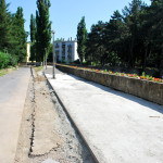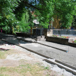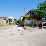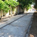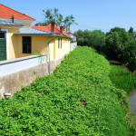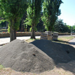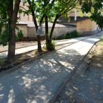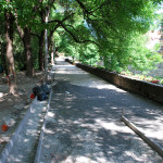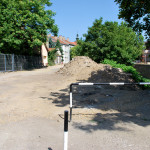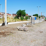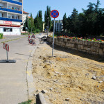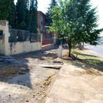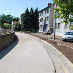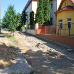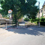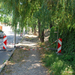 Az utolsó szakaszunk az Árva köz és Tűzoltó tér közti út, különösebben ez sem izgalmas, már legalábbis azt tekintve nem, hogy eddig is itt bicikliztünk. Újdonság viszont, hogy a parkolóház felőli téren nem kell a jövőben autókat kerülgetni, itt ugyanis egy kis park kap majd helyet. Ebből egyelőre semmi nem látszik, de a korábbi állapottól biztos esztétikusabb lesz. A szakasz közepén, a trafóház mellett lehetett izzasztóbb a tervezés, na meg a kivitelezés, itt egészen a patakig le kellett ásni, hogy normális alapot kaphasson az út. Ennek sajnos pár fa is áldozatul esett, de cserében vesztett eldugottságából a helyszín, így hátha kevesebb kétes alak üldögél majd ott a jövőben. A folytatás pedig jóformán már kész van, nem volt nehéz megcsinálni, az út eddig is megvolt, egy vízelvezetőt tettek mellé, meg picit talán szélesítettek rajta. A Tűzoltó tértől egyelőre áll a munka a Mária utcáig, itt szép zöld part várja a leendő út érkezését. Nem tudjuk, mi növény ez egyébként, de simán végig lehetne ültetni vele a patak egri szakaszát, különösebben nem tűnik igényesnek, cserében szépen zöldell és elrejt minden bedobált szemetet, a fűtől mindenképp jobb megoldásnak tűnik.
