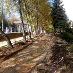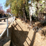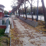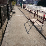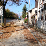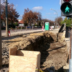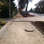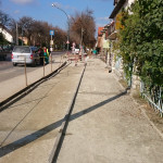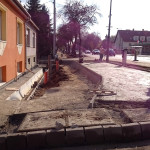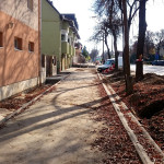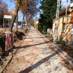 A Nagyváradi úttól a Madách Imre útig már kész az alap, itt végig egy felületet kapnak a bringások és a gyalogosok. Egy, de legalább jó széles felületet. Az osztozkodás egyébként kín, pláne, ha díszkövet kap (pedig minden bizonnyal azt kap) majd a szakasz, viszont jelen esetben nagyon praktikus megoldás. Enélkül ugye végig ki kellett volna vágni az összes fát az út mellől, ennyit azért nem ért volna a dolog. A szakaszról már csak a burkolat hiányzik, mellőle meg pár bejáró elkészülése, aztán lehet is használni az egészet. Illetve a nagy részét. A legvégén van még komolyabb munka, egyrészt az Aradi úti buszmegálló mellett, ahonnan kibontottak egy kerítést és most a helyén egy komoly szakadék tanyázik, másrészt meg a Liszt Ferenc és Madách Imre utcák közötti szigeten, ahol meg alapból volt egy kisebb szakadék és most azt kellett feltölteniük az építőknek. A Liszt Ferenc úti átkelő egyébként a legfélelmetesebb dolog eddig az egész építkezésen, itt ugyanis semmi jele az akadálymentesítésnek. Újonnan lerakott batár nagy szegély mindkét oldalon, egyelőre remegő térdekkel várjuk a folytatást, mert ugye lesz folytatás és ez még nem a végső állapot?! :(