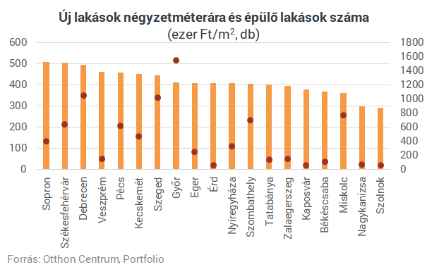 Ismét elkészítette az Otthon Centrum azt az elemzést, amelyben a megyeszékhelyek és a megyei jogú városok új építésű lakáskínálatát hasonlítja össze – olvasható a Portfolio.hu cikkében.