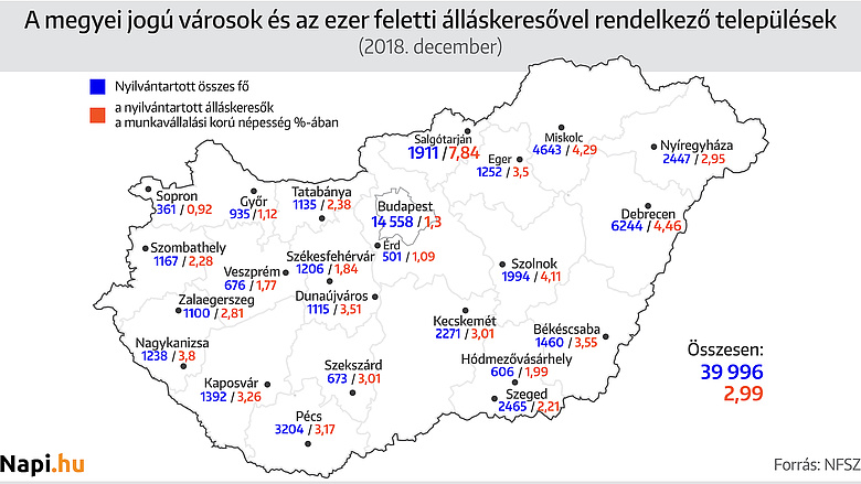A Napi.hu tett közzé egy elemzést Magyarország álláskeresőinek statisztikájáról, a cikkben külön kitérve a nagyvárosok adataira is.