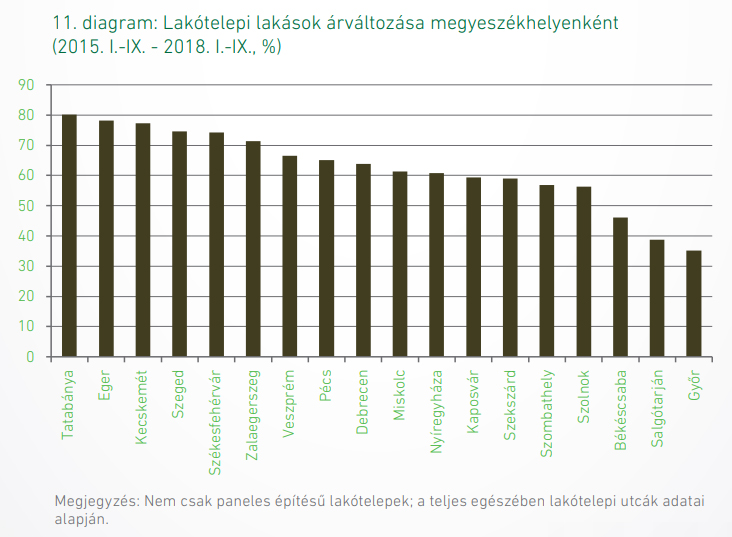 Korábban azt is leírtuk, hogy ha nem csak a panellakásokat nézzük, hanem minden lakóingatlan árváltozását vesszük, akkor Eger szintén az 5 legnagyobb ütemben dráguló megyeszékhely közé tartozik.